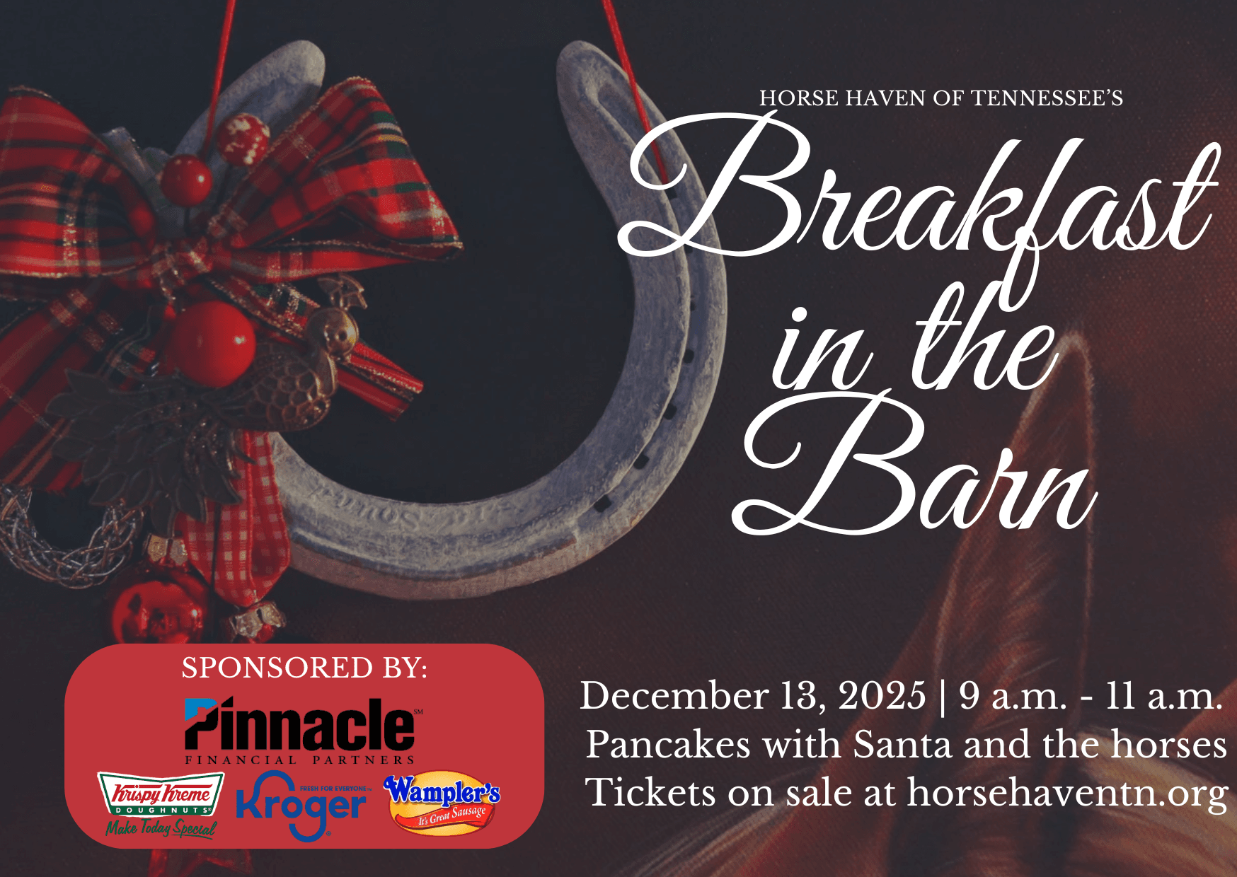 Please note that tickets are non-refundable. The event will be held rain or shine, so bundle up and get ready for a cozy morning surrounded by good food, great company, and the horses you love.